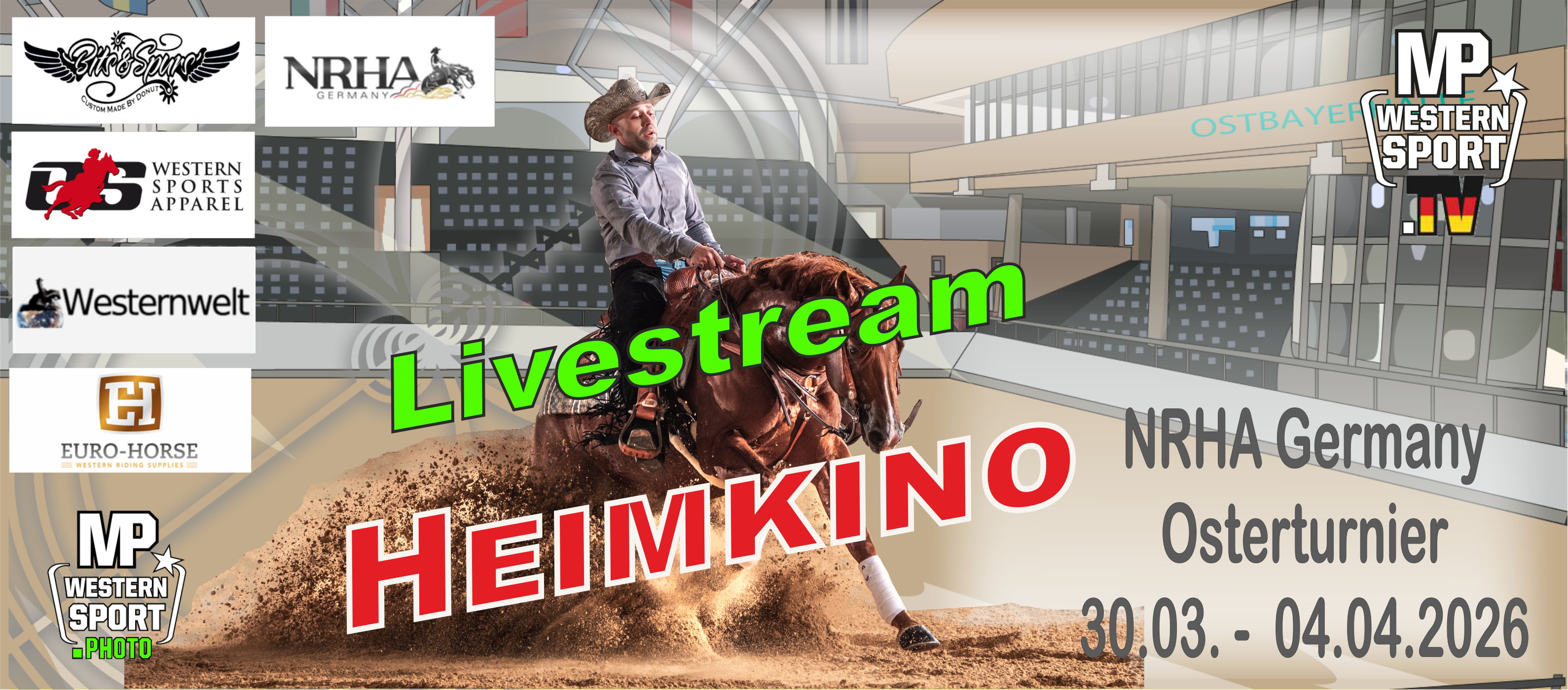 Home WESTERNSPORT.TV "DEIN SPORT JEDERZEIT UND ÜBERALL!" JETZT MITGLIED WERDEN NRHA Breeders Futurity 2023 NRHA Breeders Futurity 2023 Time Schedule Die einfachsten Schritte den Stream zu kaufen The easiest steps to buy the stream: NIMMST DU DIE HERAUSFORDERUNG AN? LIVESTREAM CHALLENGE accept the challenge and BE THE JUDGE! JETZT TEILNEHMEN Westernsport Livestream Einzelne Livestream-Events # ## Abrechnung je Livestream Hier können sie einzelne Livestreams buchen Westernsport Premium Jahresabonnement 99 00 jährliche voller Zugriff auf die Mediatheke und auf alle Livestreams (Shows & Clinics) Popular Next Livestream NRHA Germany Breeders Derby 2023